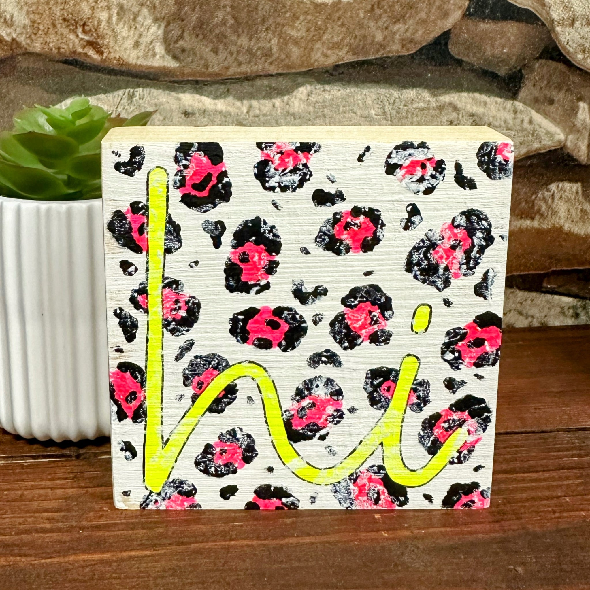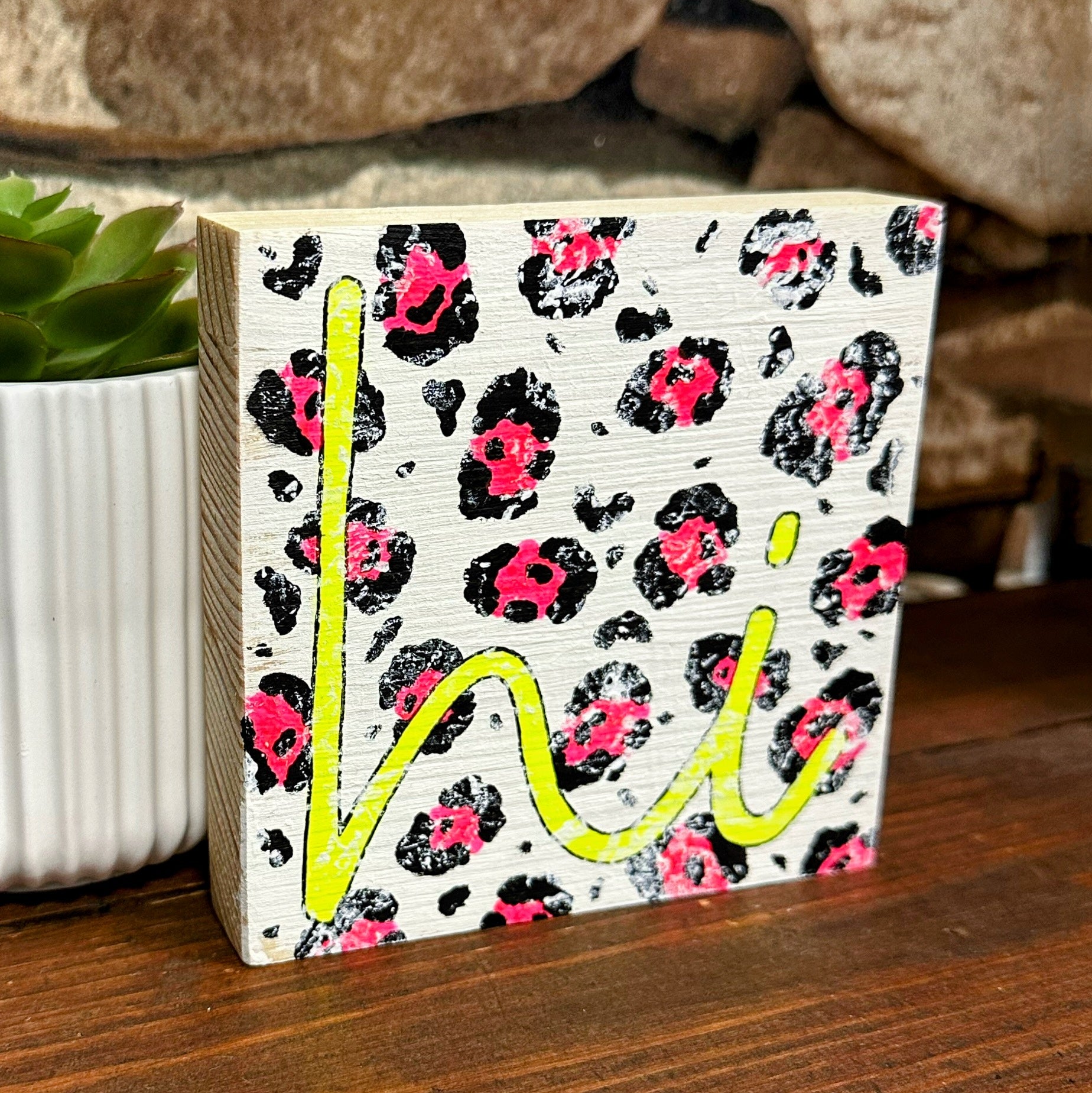 Handgefertigte Holzdeko „Hi“ – Leo-Look trifft Neon-Akzent