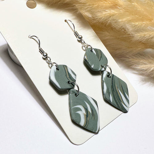 Polymer Clay Ohrringe, grau & weiß, ca. 6cm 🖐️