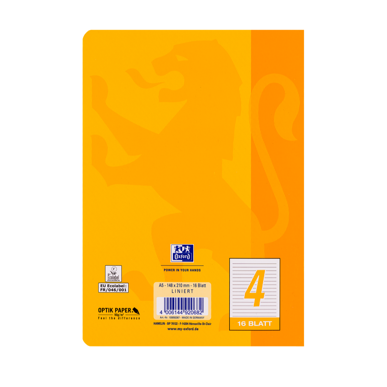 Heft DIN A5, Lineatur 4, 16 Blatt, Oxford